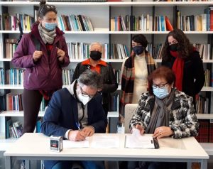 O venres 18 de febreiro asinamos o documento de cesión da parcela na rúa Celso Emilio Ferreiro. Ben agradecidas a Amalia Niebla, propietaria da parcela e a todas as compañeiras e entidades que nos acompañan nesta nova aventura. Neste espazo desenvolveremos un proxecto ben lindo, un prototipo de bosque comestible, do que faremos partícipes a entidades e veciñanza para a limpeza, acondicionamento, deseño, prantación, coidado e recolección.